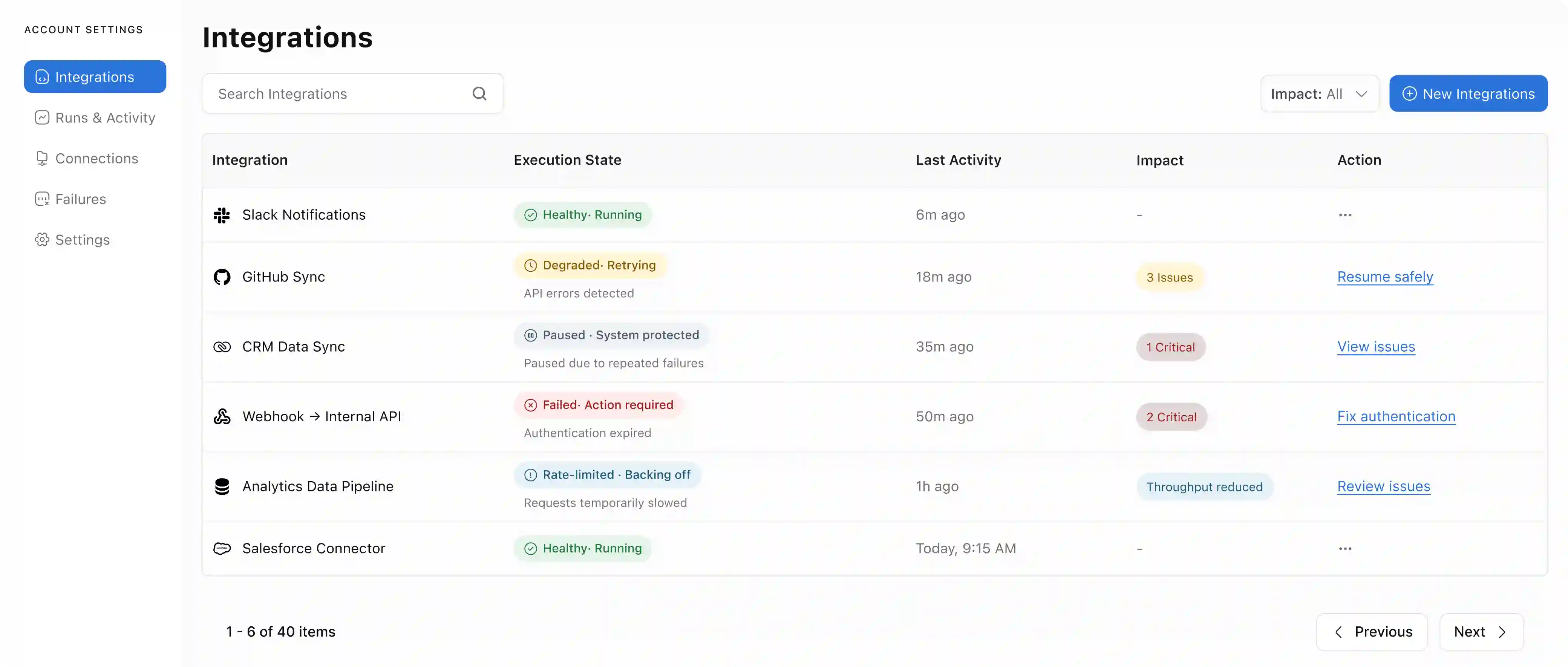 This removed flexibility some admins want — like force-resuming a paused integration. That tension was intentional. Confidence matters more than speed in a failure scenario.